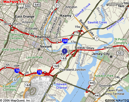 exit 140A to Route 22 East. From New Jersey Turnpike Northbound-- Take exit 13A to US Routes 1 & 9 North to Haynes Avenue Exit. Follow Haynes Avenue over Highway Overpass. At foot of Overpass immediately turn left to get onto 1 & 9 South. Stay in right lane - Days Hotel is 200 yards ahead on your right. From Garden State Parkway Northbound-- Take Parkway North to Exit 129 ( NJ. Turnpike) Follow NJ Turnpike north to Exit 13A. Continue Following NJ Turnpike Northbound Directions Above. From Wall Street, Manhattan-- buy a 10% share in Continental Airways, which entitles you to free air miles. Fly into Newark airport, and have company limosine follow directions above. Site Map