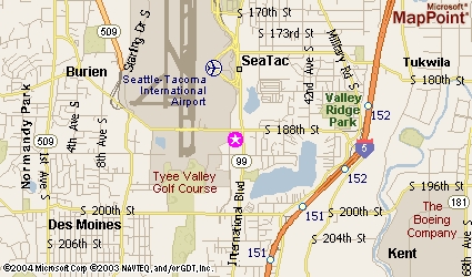 Here's more information about our Goldenseal training class in Seattle, Washington. The class is located near Sea-Tac airport, midway between Seattle and Tacoma. It covers the Goldenseal estimating software, business management software and accounting software. For other class dates, click here. Class Date The Seattle training class is scheduled for Friday, Feb 4, 2004, from 9 AM to 4 PM. Class Location Comfort Inn & Suites Sea-Tac Phone: (206) 878-1100 HINT-- There is a 24 hour shuttle available from Seattle-Tacoma airport. Call the hotel to arrange pickup. Directions From Airport-- Go south on International Blvd./SR99 S, 3 blocks past intersection with 188th St. Hotel is on the right. From Seattle and North-- Take I-5 south to exit #152. Go west on 188th St to International Blvd./SR99 S. Turn left. Hotel is 3 blocks on right. From Tacoma and South-- Take I-5 north to exit #152. Go west on 188th St to International Blvd./SR99 S. Turn left. Hotel is 3 blocks on right. From Vashon Island-- Swim across Puget Sound to Three Tree Point. Take hang glider east via prevailing winds to 188th St or 200th St (watch for low-flying planes). Steal golf cart at Tyee Valley Golf Course and proceed west to International Blvd. Go north to hotel on left. Park the cart by the ice machine so others may use it for return trip. Site Map