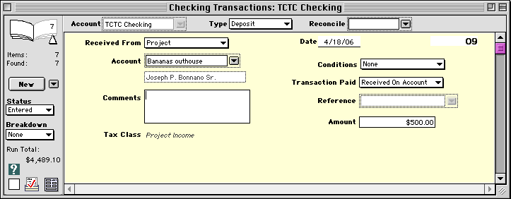The first bill for actual expenses will subtract the deposit from the total amount owed. Follow the link for more about time and materials billing in the Reference manual. Click here to return to Project Management topics.