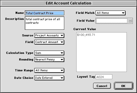 - Choose Calculations from the Options menu, then choose Accounts from the