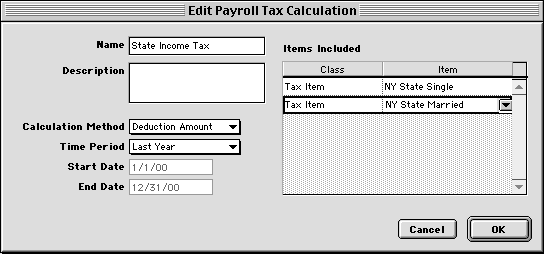 - If this item takes values for certain taxes, benefits or wage rates, enter them into the Items Included