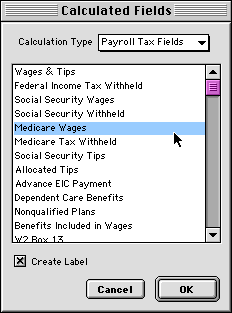 - You'll see a dialog to choose a calculated field. Choose Payroll Tax Fields in the Calculation Type popup