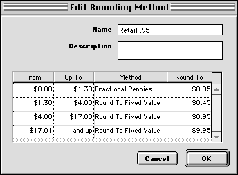 There are several calculation methods available for markups. Retail Markup adds a percentage of the final sale price, Simple Markup adds a percentage of the purchase price, and Fixed Addition adds a constant dollar amount. You can also use Manual Pricing, where you simply type in a resale price for each item, rather than using Goldenseal's calculation. When a markup system calculates the price for an item, it uses a rounding method to 'tidy up' the net amount. You can simply round to the nearest penny or dollar, or you can trim the price to a 'retail' amount such as .98. To look at a rounding method, follow these steps: