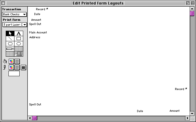 Goldenseal small business software includes a simple graphics environment where you can change the appearance of almost anything that you print or see on the screen. This lesson shows you how to create custom layouts for your reports, printed forms and data entry windows. You may need to make adjustments to the check printing form, so it lines up correctly on the checks that you use. To change a printed form, follow these steps: