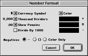 Goldenseal allows you to set the use of currency symbols, thousands dividers and pennies. You can also set the handling for negative numbers, and the coloring of positive andnegative values. HINT: Goldenseal uses standard currency symbols, thousands dividers and decimal point characters. Set them in the Numbers Control Panel (Macintosh) or the Regional Options Control Panel (Windows). To change the borders of a data entry field, follow these steps: