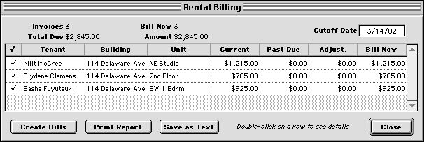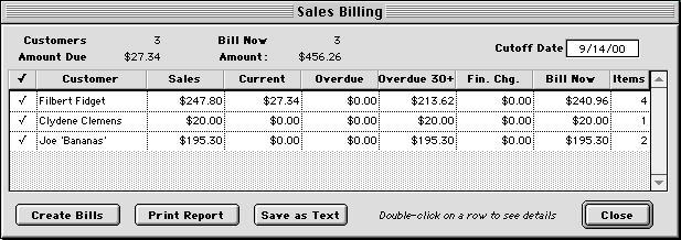 you click the Create Bills button, Goldenseal automatically creates billing records for each marked account.