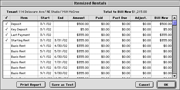 - Choose Billing from the Bank menu, then choose Rentals from the submenu.