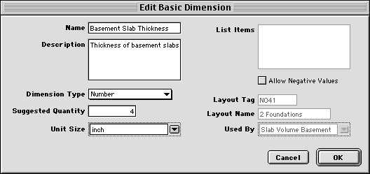 Goldenseal construction estimating software lets you create your own dimension measurements, if there isn't a Starter File that suits your estimating needs. You can also make changes to an existing set of dimensions. The four classes of dimensions calculators provide the logic that converts simple project measurements into actual quantities of labor and materials. You can use them to calculate construction quantities, or any other project dimensions. Basic dimensions are simple measurements that you type in for each estimate. To create a new basic dimension, follow these steps: