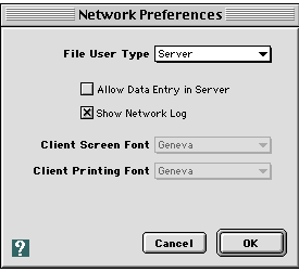 When you are using Goldenseal accounting software over a network, the server file is the “master copy” which contains all of your company data. You can access that data directly from the server, just as you’d do with the single-user version of Goldenseal. You can also access that data from any of the clients that connect to the server. Open a Goldenseal server file exactly the same as a single-user Goldenseal file. To open a server file on the Macintosh, follow these steps: