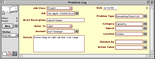 Projects from the Reports menu, then choose Problem Log from the submenu.