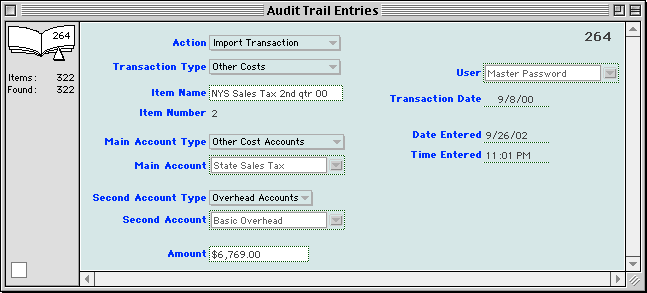 Transaction Type-- If an account, list or transaction is changed, its basic type is shown here.
