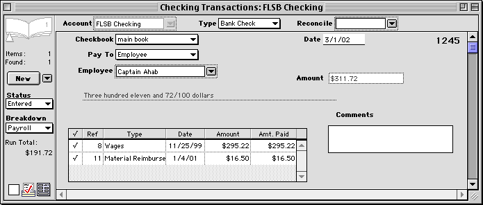 - Choose Checking Transactions from the Accounts menu, then choose the bank account from which payment will be made.