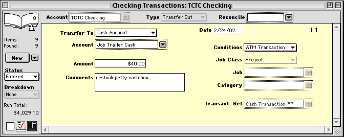 Follow the same steps to handle other transfers such as an ATM withdrawal that you put into a Cash account, a transfer from savings to checking, or an