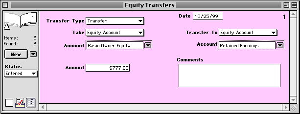 To enter an Equity Transfer, follow these steps: