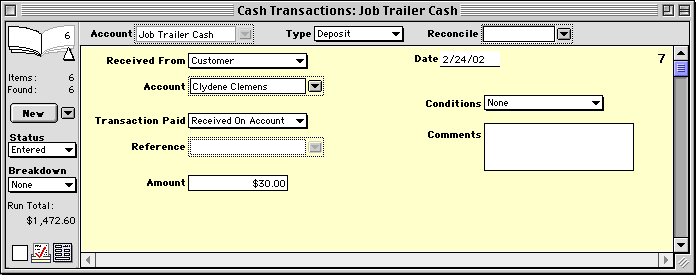 - Enter Deposit into the Type popup at the top of the window.