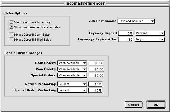 Job Cost Income-- Choose the types of income that will appear in the Job Costs command.