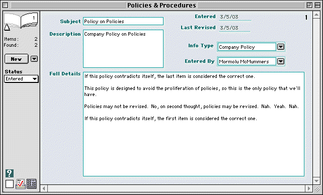 HINT-- Policies & Procedures are a good place to store general info in the Goldenseal business management