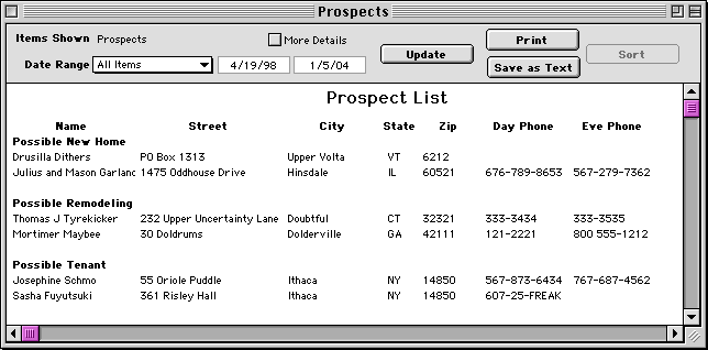 - Prospects-- A list of possible customers.