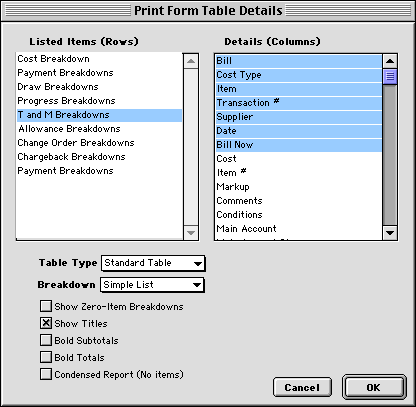 Details-- From the list at center right, choose the specific data fields to display in columns of the table.