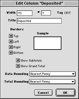 Borders-- Click on the checkboxes to show or hide borders around this column.