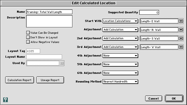 - Choose Calculations from the Options menu, then choose Calculated Locations