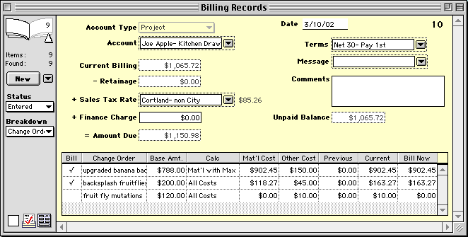 - Goldenseal will create Billing Records with a Change Order breakdown.