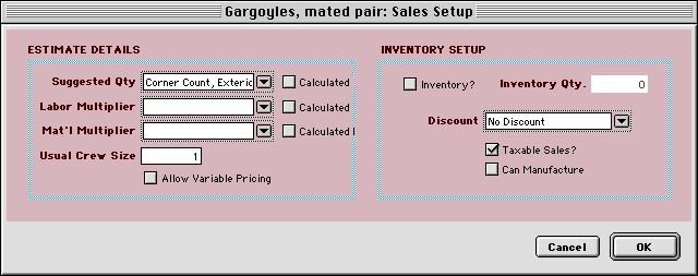 Markup-- Choose a Markup System to calculate pricing for this item.
