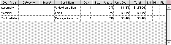 Gross Price-- The calculated price of all subassemblies is displayed.