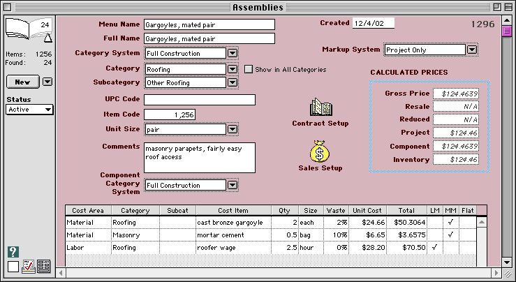 HINT-- Assemblies are a key part of the Goldenseal estimating software and inventory management