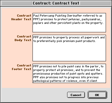 HINT-- To see the text that can be replaced in contracts, choose Preferences from the Options menu, and choose Contracts from