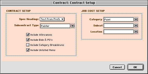 Click the Contract Setup button to enter more details for the contract's contents.