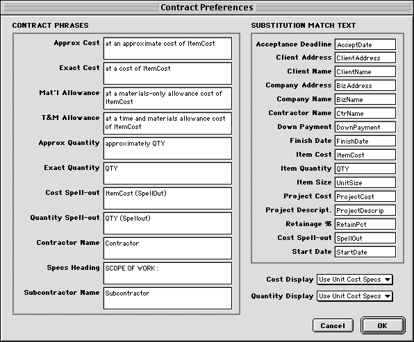 To set details for contract writing, choose Preferences from the Options menu, and choose Contracts from