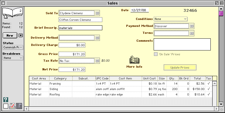 6. When you are finished with the itemized rental dialog, click OK.