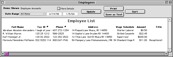 Use the Employee Accounts report to see a list of all your employees. When you click the Update button, it will show you a simple list of employees.
