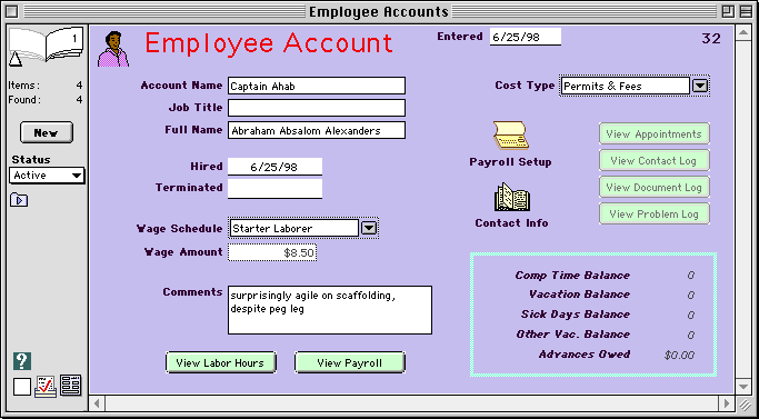 HINT-- The Goldenseal accounting software uses Employee accounts for payroll, job costing, time tracking and
