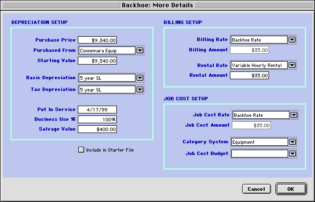 Billing Rate-- Choose the billing rate that you use for this equipment for time