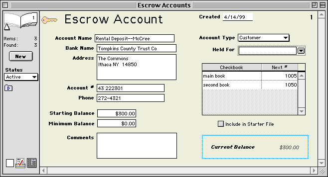 ESCROW ACCOUNT RECORDS