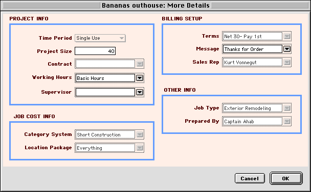 you will do for a current customer, choose Customer. For a cost budget on your own work, choose Investment, Overhead, Real Estate.