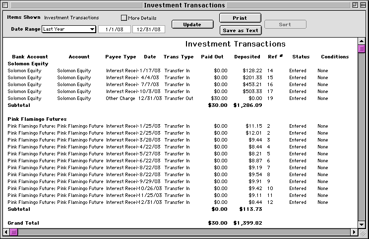 Investment Transactions Report |