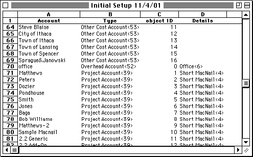 When you actually start work in Goldenseal, you'll be able to refer to accounts by name, choosing them from popup menus or clairvoyant lists. There