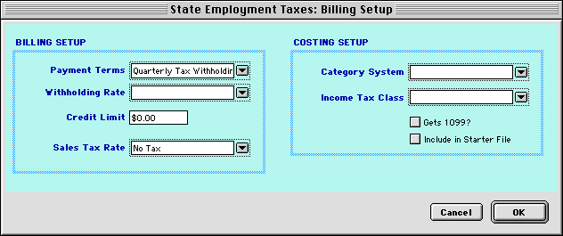 Income Tax Class-- Enter the cost category you'll use for this vendor's expenses in the Income Tax report.