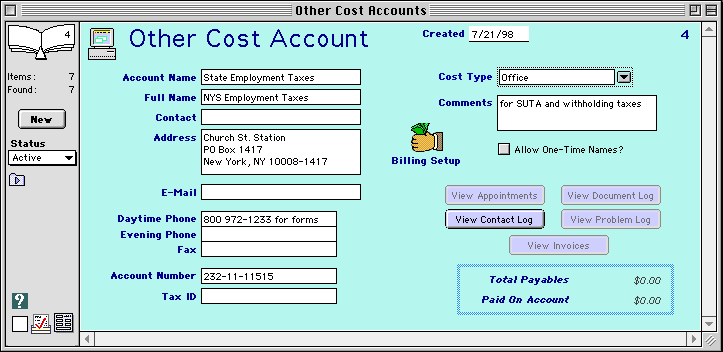 Comments-- Type in any comments you have about this account. You can enter key words here, to make it possible to find groups of accounts.