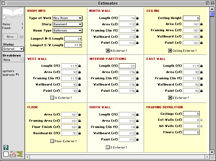 - Click the New button, or choose New Record from the Edit menu, or find an existing estimate.