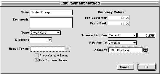 Transaction Fee-- If you pay a transaction fee for payments of this type, choose whether the fee is a fixed dollar amount or a percentage, and enter