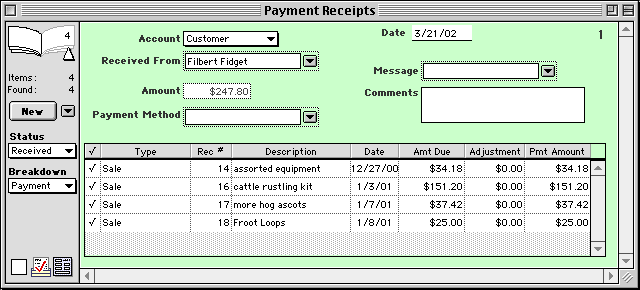 HINT-- Payment Receipts are an optional part of the Goldenseal accounts receivable software. PAYMENT RECEIPT BASICS