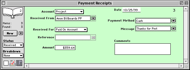 Record Number-- A record number is automatically assigned to each payment receipt.