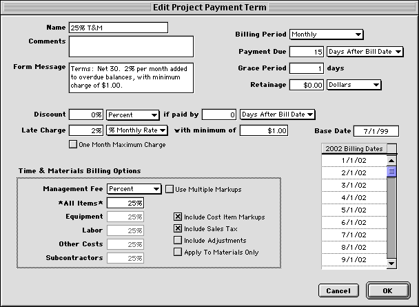 Time and Materials Billing Options-- For more about these options, click here. They set the management