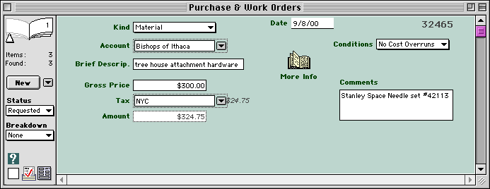 Purchase/Work Order Breakdowns