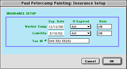 Click the Insurance Setup button to enter insurance info for this subcontractor: