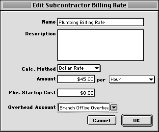 - Choose Billing Rates from the Options menu, then choose Subcontractors from the submenu.